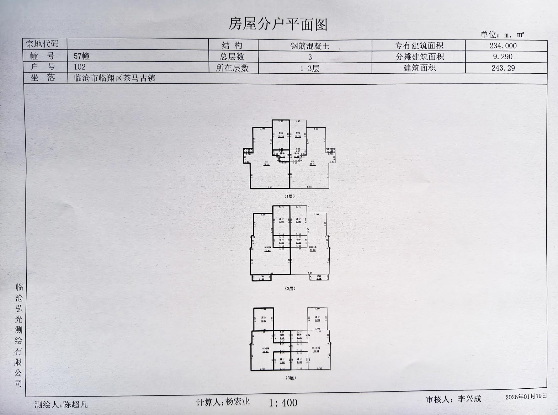临沧茶马古镇建设项目F2区57栋102住宅工程竣工规划核实