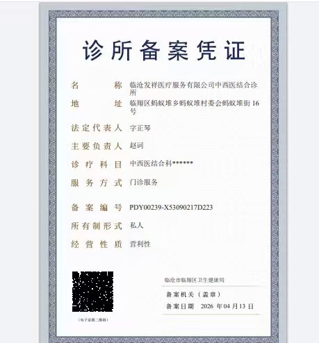 医疗机构名称:临沧发祥医疗服务有限公司中西医结合诊所