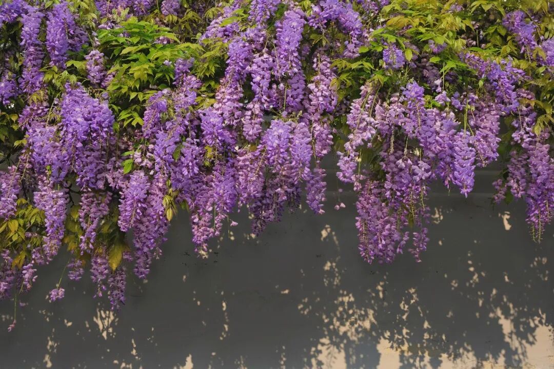 走进忙令社区,这面依墙而生的紫藤花格外醒目。藤蔓蜿蜒攀爬,枝头花穗层层叠叠、随风轻扬,如紫色帘幕倾泻而下,与白墙民居相映成趣,静谧又雅致。这处花景由户主多年悉心栽种、精心打理,从小小藤蔓长成如今繁花满墙,不仅扮靓了自家小院,也为街坊邻里和过往路人送上了一抹春日浪漫。