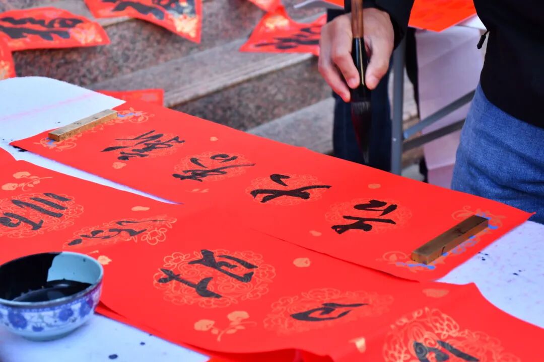 活动现场,红纸铺展、墨香四溢,一派热闹祥和的景象。书法家们凝神聚气、笔走龙蛇,将新春的美好期许凝于笔端,把对生活的美好祝愿融于笔墨。一副副寓意吉祥的春联,一个个饱含福气的“福”字,或俊逸潇洒、或浑厚大气,刚劲有力的笔墨间,不仅尽显中华书法艺术的独特魅力,更承载着对圈内乡群众和企业职工新年的美好祝福。