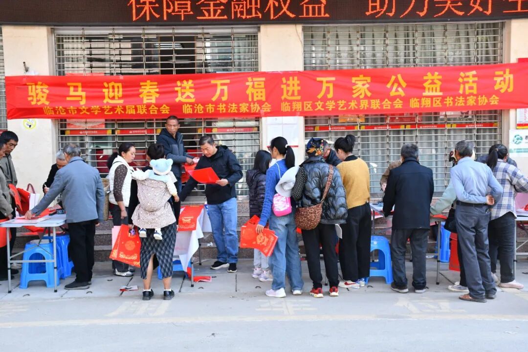 新春将至,年味愈浓。为深入传承中华优秀传统文化,丰富群众春节文化生活,把党和政府的关怀与新春美好祝福送到基层一线,2026年2月10日,圈内乡携手临沧市文联、临翔区文联,联合市、区书法家协会开展送万福进万家公益活动。书法家先后走进圈内街、云佳咖啡公司,以笔墨传情、以春联送福,让全乡群众和企业职工在浓浓墨香中感受别样的新春年味。