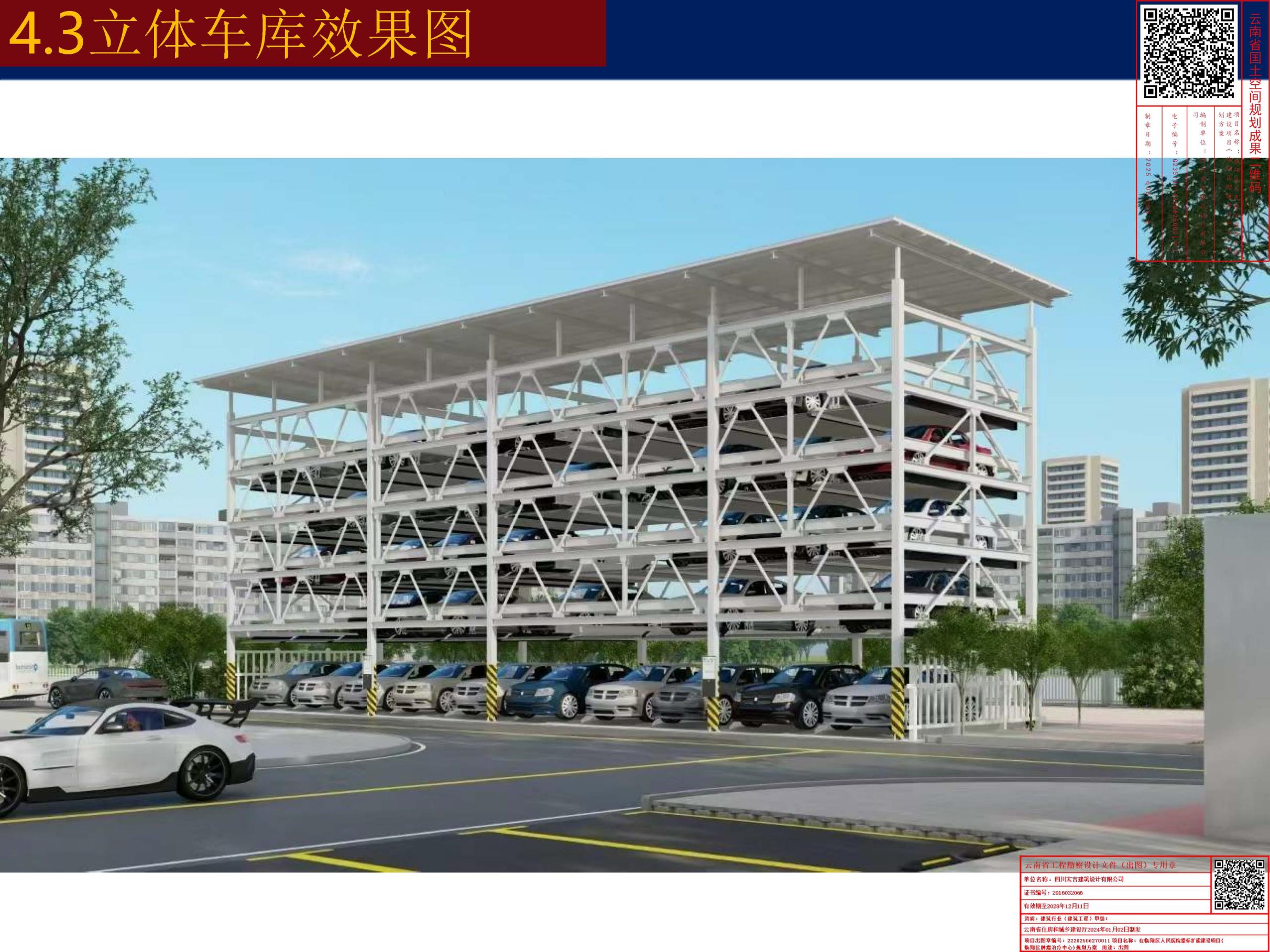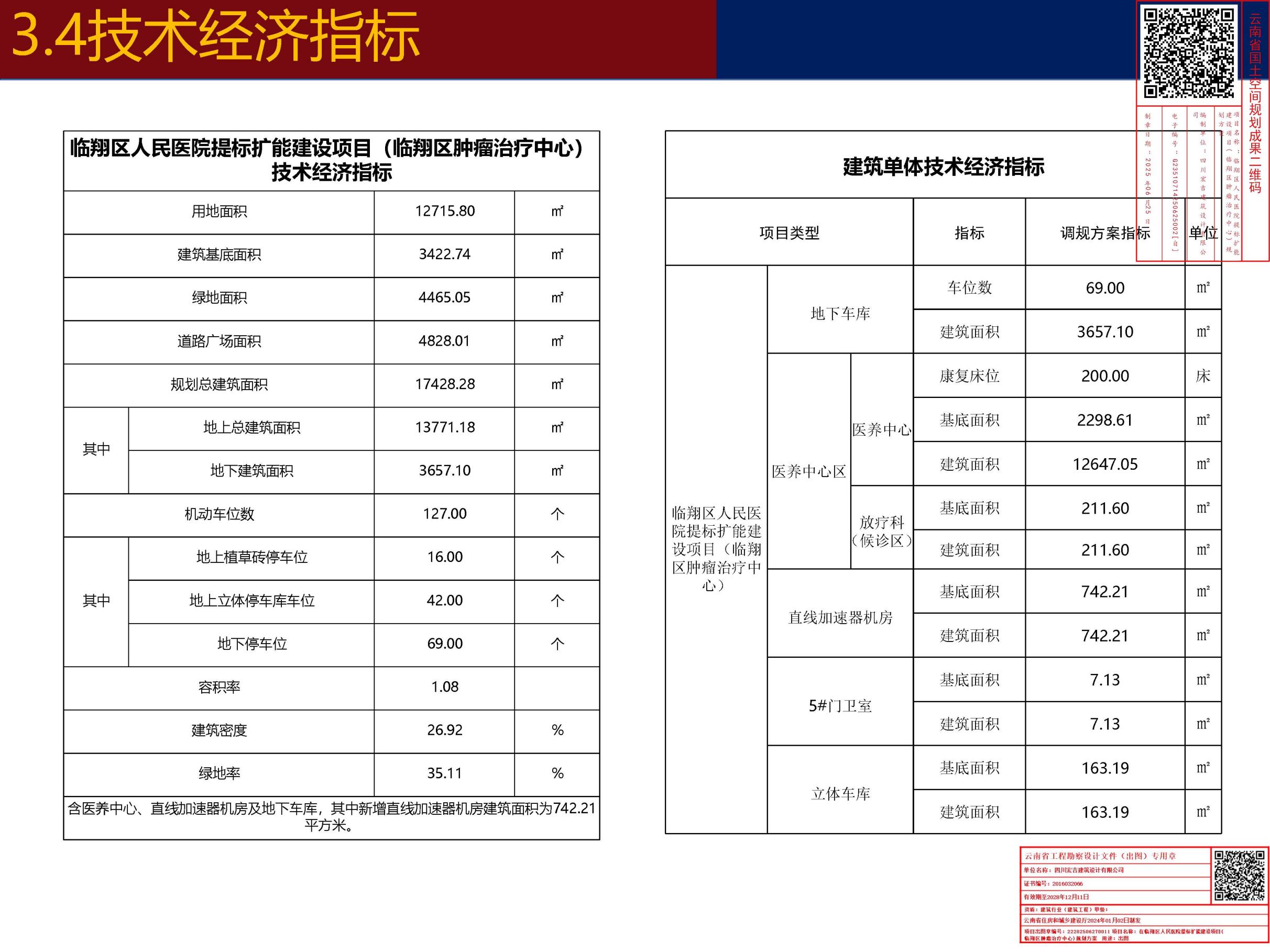 主要经济技术指标 | 新增总建筑面积:1124.13平方米,其中直线加速机房742.21平方米(层数为地上1层),立体车库163.19平方米(层数为地上1层至地上5层),5#门卫7.13平方米(层数为地上1层),放疗科(候诊区)211.60平方米(层数为地上1层)。容积率1.08,建筑密度26.92%,绿地率35.11%。 |