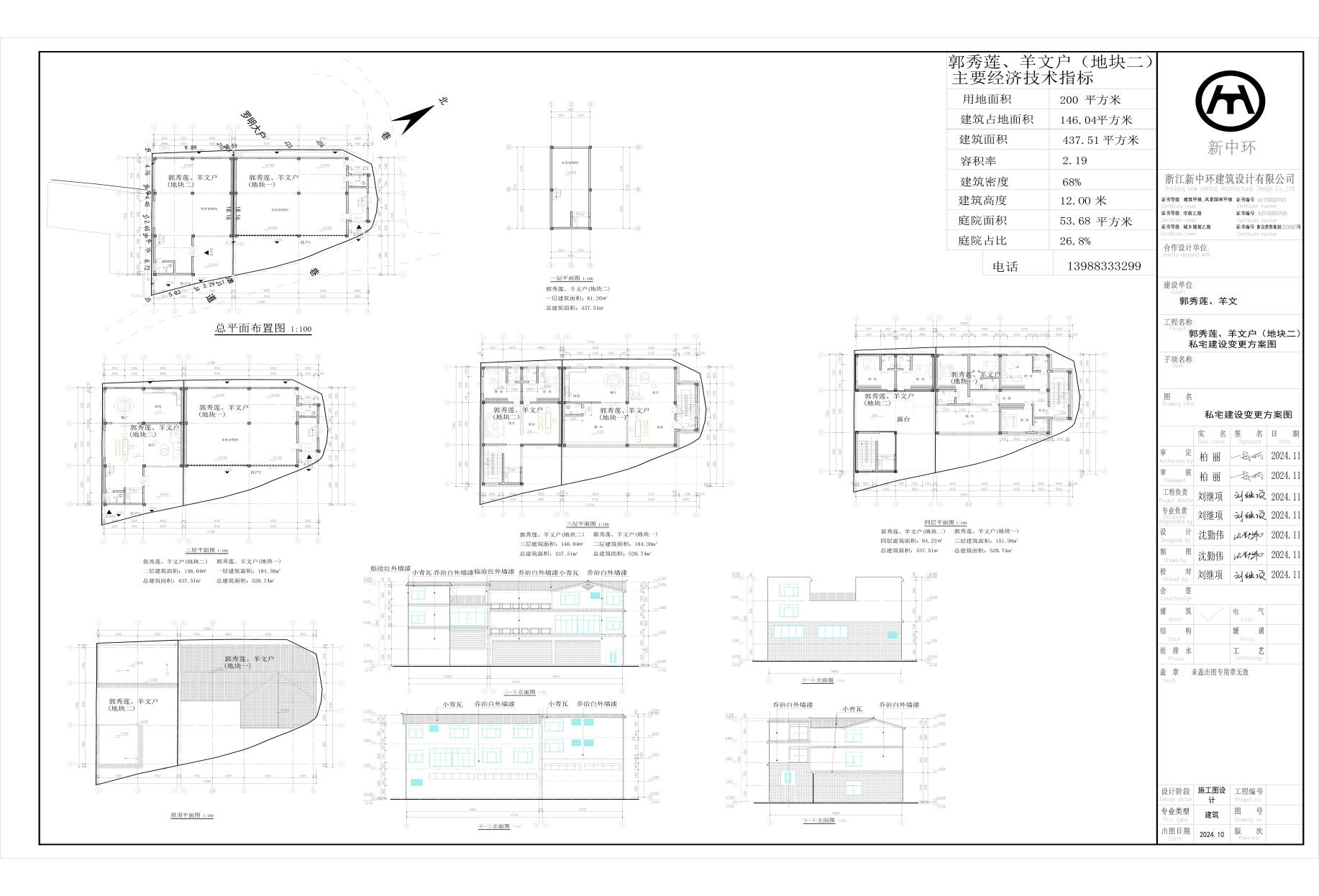 用地面积:200㎡,新建建筑面积:437.51㎡,建筑占地面积146.04㎡,建筑密度68%,容积率2.19,庭院占比26.80%,建筑层数:地上1层至地上局部4层