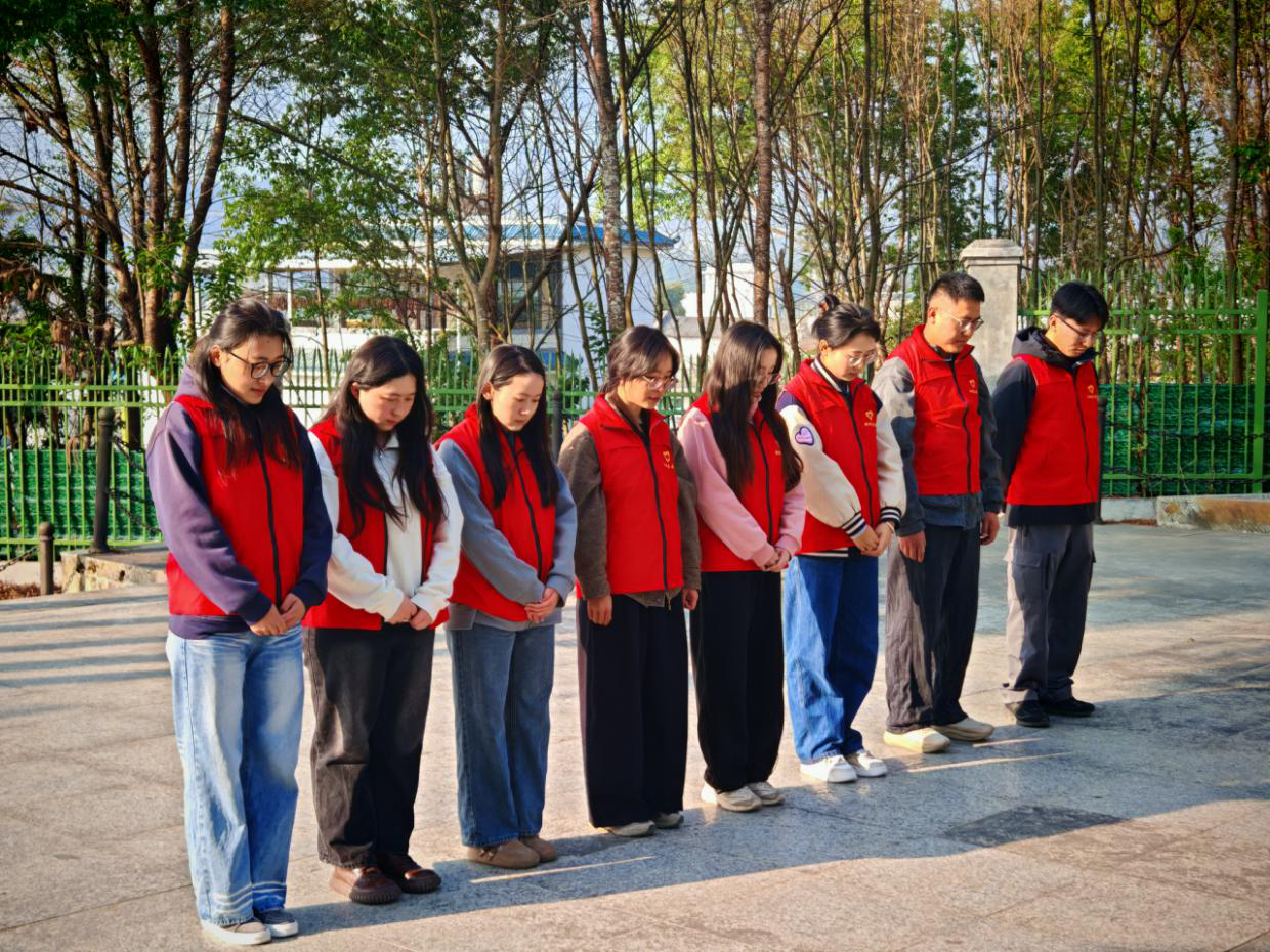 清扫结束后,全体人员列队肃立,整理着装。向革命烈士默哀致敬,深切表达对烈士的沉痛哀悼与无限敬仰。