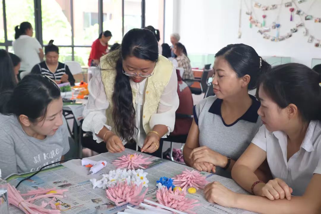 “我是全职在家带娃的,之前在社区群里看到有免费手工花培训,就报名参加了一期,没想到很快就上手了。” 社区居民李桂美笑着说,“得知做得好有相应报酬,而且社区成立了手工坊,我就立刻前来参加,现在既能照顾娃娃,又能做手工,还能补贴一部分生活费,特别满足。”