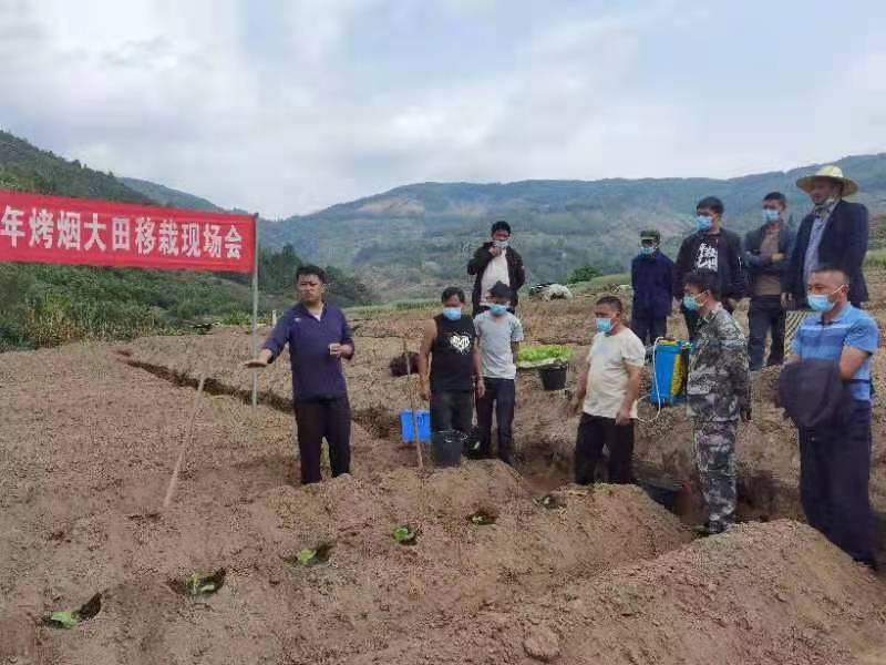 此次培训采取理论与实践相结合的方式进行,以此推进乡烤烟工作,抢抓节令完成烟苗移栽,确保烟农增产增收。乡烟站技术人员在大田移栽现场围绕膜下常规苗移栽技术要点,从标准化移栽、栽后管理等各个环节进行详细讲解,并进行了株距、行距、浇水、选苗、移栽、环状施肥、施药、常见病预防等方面现场实地操作示范。参训人员专心听讲、仔细观摩并动手操作,实实在在掌握了技术要领。与此同时,乡烟站负责人还对当前烟叶工作开展情况进行分析,指出存在的困难和问题,对移栽工作提出宝贵建议,为指导烟农做好烟苗移栽提供有力的技术保障。