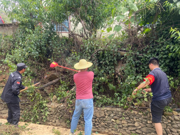 并在村组干部的共同努力下对村组道路一线的杂草及白色垃圾进行清理,干部职工不仅发挥了党员先锋模范带头作用,还充分发扬了头顶蓝天、脚踩泥巴,不怕苦、不怕累的精神。