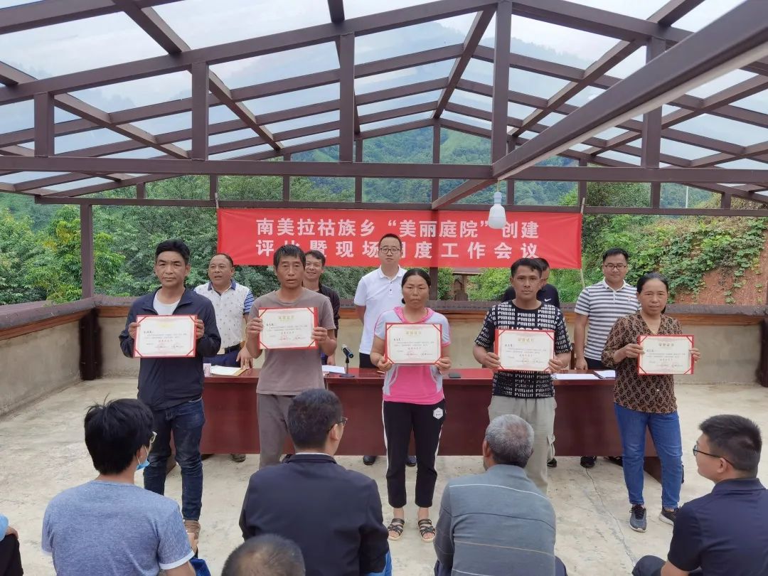 为深入推进2022年度党建引领乡村振兴示范点创建工作,稳步推动党建工作与乡村振兴的互融互促、深度融合,6月16日,南美拉祜族乡在坡脚村竹笆桥自然村,召开“美丽庭院”创建评比暨现场调度工作会议,会议以现场讲解观摩、创建成果测评、评定优秀示范户的方式进行,重点检验总结了“美丽庭院”创建工作开展以来的阶段性成效,切实为加快推进创建示范工作提档升级。