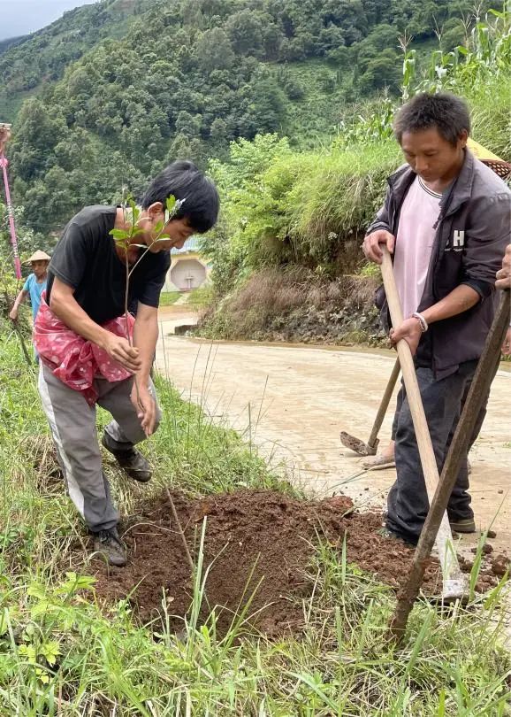 近日,走进南美拉祜族乡坡脚村,映入眼帘的是一片干部群众沿村组主干道进行沟渠清理、道路清扫,挥锹铲土、扶树正苗、浇水培土,在荒地、空地种植树苗的繁忙景象。
