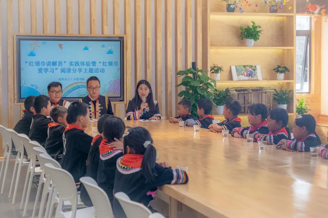 一代人有一代人的长征路,一代人有一代人的使命担当。为深入学习宣传贯彻党的二十大精神,进一步引导少先队员树立“听党话、感党恩、跟党走”的先锋意识,赓续红色血脉,弘扬爱国精神。近日,南美拉祜族乡在“云上乡愁书院”组织开展新时代文明实践“红领巾讲解员”实践体验暨“红领巾爱学习”阅读分享主题活动。乡村两级干部、群众代表、新华书店工作人员、南美学区学生等40余人参加活动。