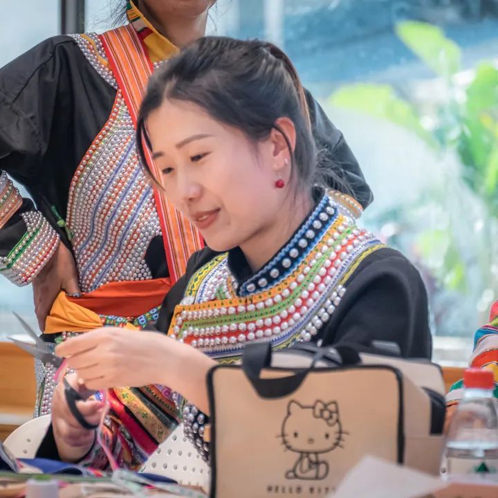 火镰包缝制是拉祜族一门古老的传统民间手工艺术,也是现代非常宝贵的非物质文化遗产。这次妇女节活动,南美乡特别邀请了区级南美拉祜族服饰制作技艺传承人李娜戈为大家做培训和讲解,只见她认真地为大家介绍基本针法和注意事项,大家专心致志地听着,生怕听漏了重要步骤。姐妹们从一开始的小心翼翼到熟能生巧,边制作边感慨“别看一个小小的啊咪迫(火镰包),很是“吃”功夫呢,不过女神节,亲手做一份礼物送给自己是一件很有意义的事!”活动现场一片欢声笑语。
