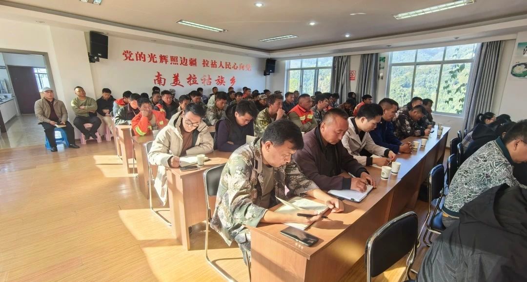 南美乡全体党政领导班子成员、各办、队、中心负责人(含下设各站所负责人)、各村支书、安全生产负责人、护林员、扑火队员、乡辖区内施工单位安全生产负责人参加会议,区森林防火指挥部办公室主任、区应急管理局副局长刘剑刚、临沧澜沧江省级自然保护区临翔分局局长刘成富到会指导。