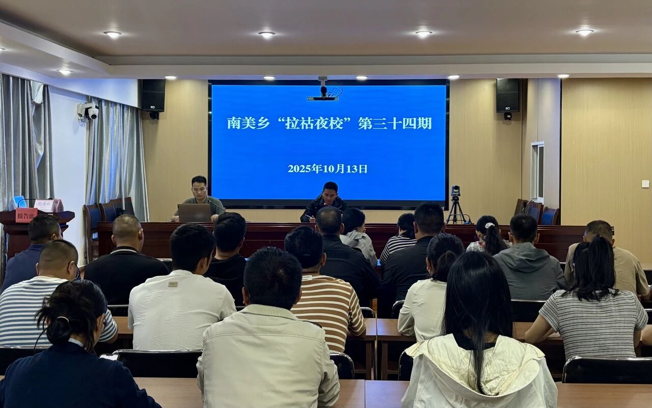 为推动乡村振兴政策落地见效,切实提升干部职工对政策的理解与执行能力,10月13日,南美乡“拉祜夜校”第三十四期培训在乡二楼大会议室如期举行,在家党政班子成员及乡全体干部职工参加此次培训。