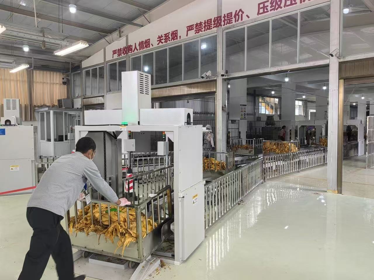 走进圈内乡烤烟收购点,随处可见一片繁忙景象,烟农代表们正有序地将一车车烟叶卸车、散包,并搬运至收购台前;工人们则紧张而熟练地进行复验定级、过磅、入库等流程,各个环节井然有序、衔接顺畅。