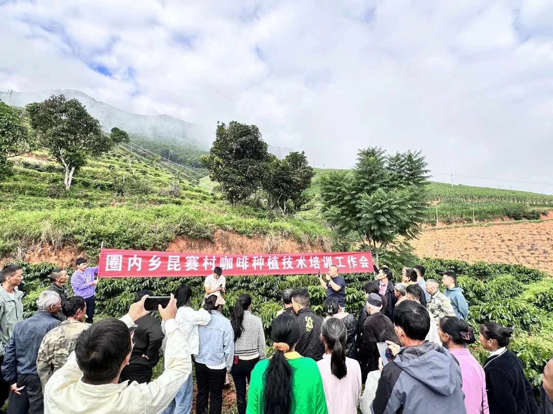 清晨,当初升的阳光洒落在海拔1100米的云佳咖啡庄园,一辆辆满载着咖啡鲜果的货车从周边村落陆续驶来。现场工作人员早已准备就绪,有序引导咖农将一袋袋红彤彤的咖啡鲜果进行过秤、卸车,准备进厂加工。 “与往年相比,今年收购价格更为可观。开秤首日,我们以每公斤8.7元的价格进行收购,而去年开秤价为每公斤5元。”云佳咖啡庄园负责人王家强介绍,“今年的咖啡价格走势良好,后期收购价格预计还将继续上涨,亩产值将突破7000元,惠及到周边的四五个乡镇。” 近年来,圈内乡按照“党组织+企业+基地+合作社+咖农”的发展模式,充分发挥党建引领作用,持续推进咖啡产业发展联合体建设,构建起稳定共赢的利益联结机制,有效促进咖啡产业向规模化、品质化迈进。目前,全乡咖啡种植面积达3700余亩,预计本产季鲜果产量可达2100余吨,总产值有望达到1800余万元,带动600余户农户实现稳定增收。 以开秤为契机,圈内乡当天还在云佳咖啡庄园组织开展了咖啡种植技术培训。专业技术人员围绕咖啡种植管理、病虫害防治及采收加工等关键环节进行系统讲解,切实帮助咖农提升种植管理水平,为进一步实现增收致富提供技术支撑。