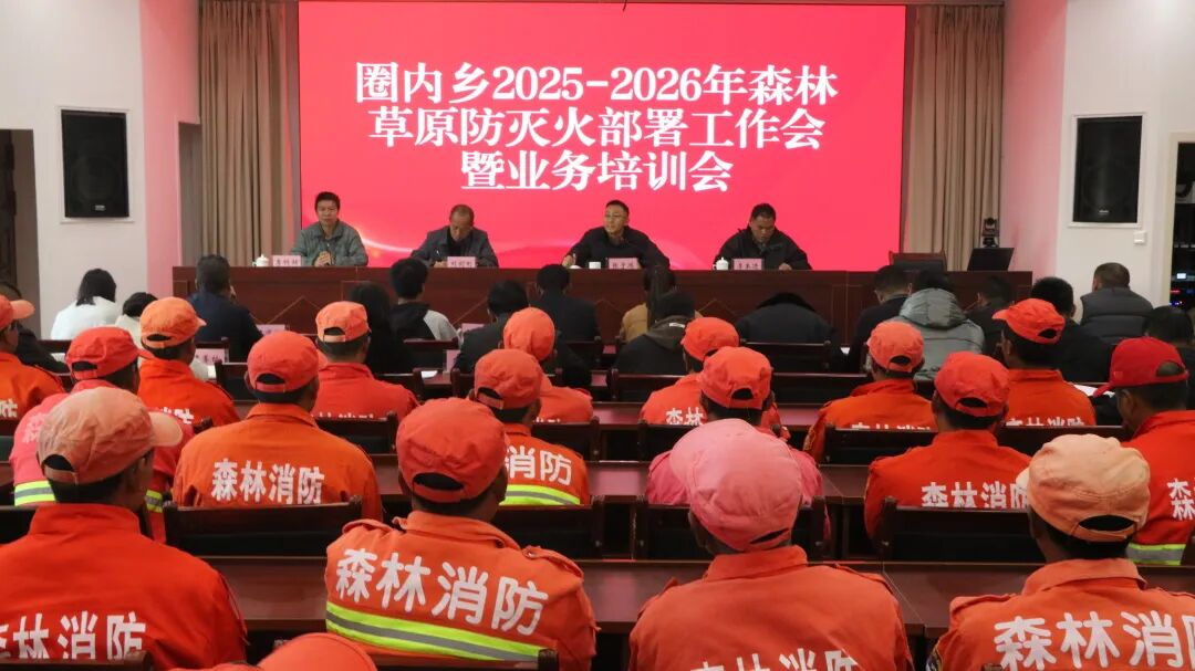 为深入学习贯彻习近平总书记关于加强森林草原防灭火工作的重要指示批示精神,认真落实国家和省、市、区森林草原防灭火工作会议要求,12月30日,圈内乡召开2025—2026年森林草原防灭火动员部署暨业务培训会议。区应急管理局、区林业和草原局相关负责同志到会指导,部分乡党政领导班子成员、各村党总支书记、乡产业发展和技术服务中心部分工作人员、乡消防站、乡全体护林员及乡应急队队员共122人参加会议。
