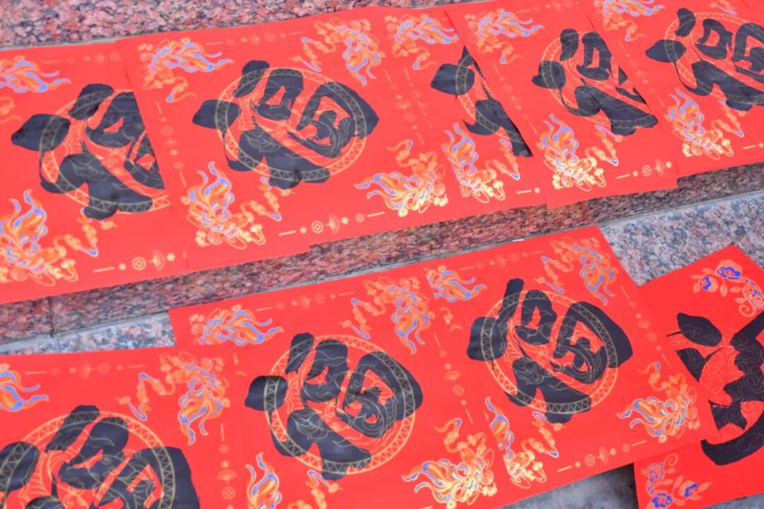 活动现场,红纸铺展、墨香四溢,一派热闹祥和的景象。书法家们凝神聚气、笔走龙蛇,将新春的美好期许凝于笔端,把对生活的美好祝愿融于笔墨。一副副寓意吉祥的春联,一个个饱含福气的“福”字,或俊逸潇洒、或浑厚大气,刚劲有力的笔墨间,不仅尽显中华书法艺术的独特魅力,更承载着对圈内乡群众和企业职工新年的美好祝福。