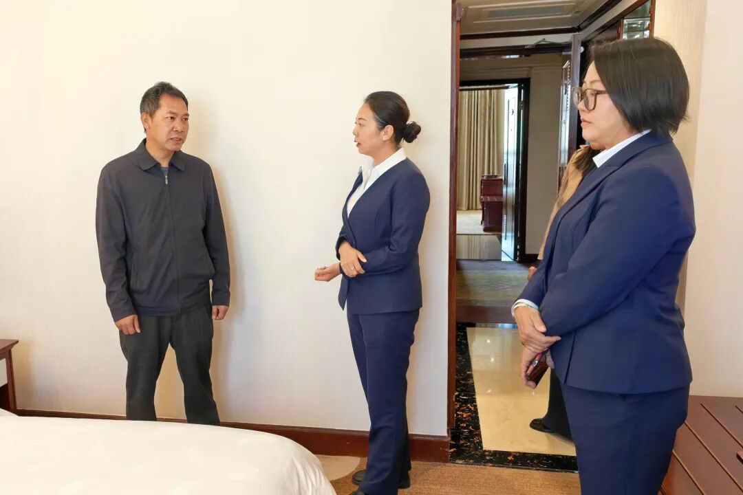 2月24日,区人大常委会副主任谢之剑、唐兴玲分别带队到代表驻地及会场,实地检查会议筹备情况。在代表驻地,工作组逐一检查客房住宿、餐饮保障、医疗应急等,详细询问物资储备、人员配备等情况,叮嘱工作人员要以高度的责任感,为代表们提供优质、贴心的后勤服务,营造安全舒适的会议环境。