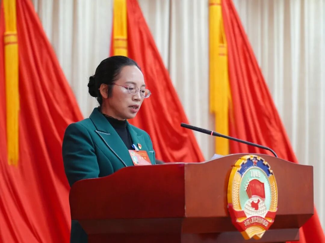 董大琼代表政协临沧市临翔区第五届委员会常务委员会向大会报告工作。