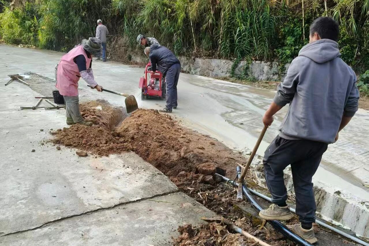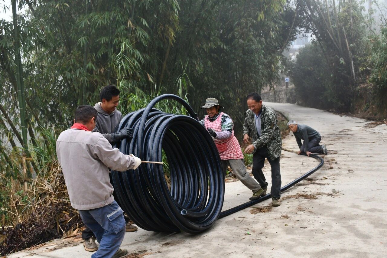 得知这一情况后,新村党总支迅速行动,主动对接上级部门,现场办公、多方协调。经反复勘察论证,决定投入资金2万余元,新增一条1.6公里的引水管道。方案一敲定,各部门通力协作,施工队加班加点,仅用3天便完成管道铺设,将水源成功引入水池,并接通至学校及周边群众家中。