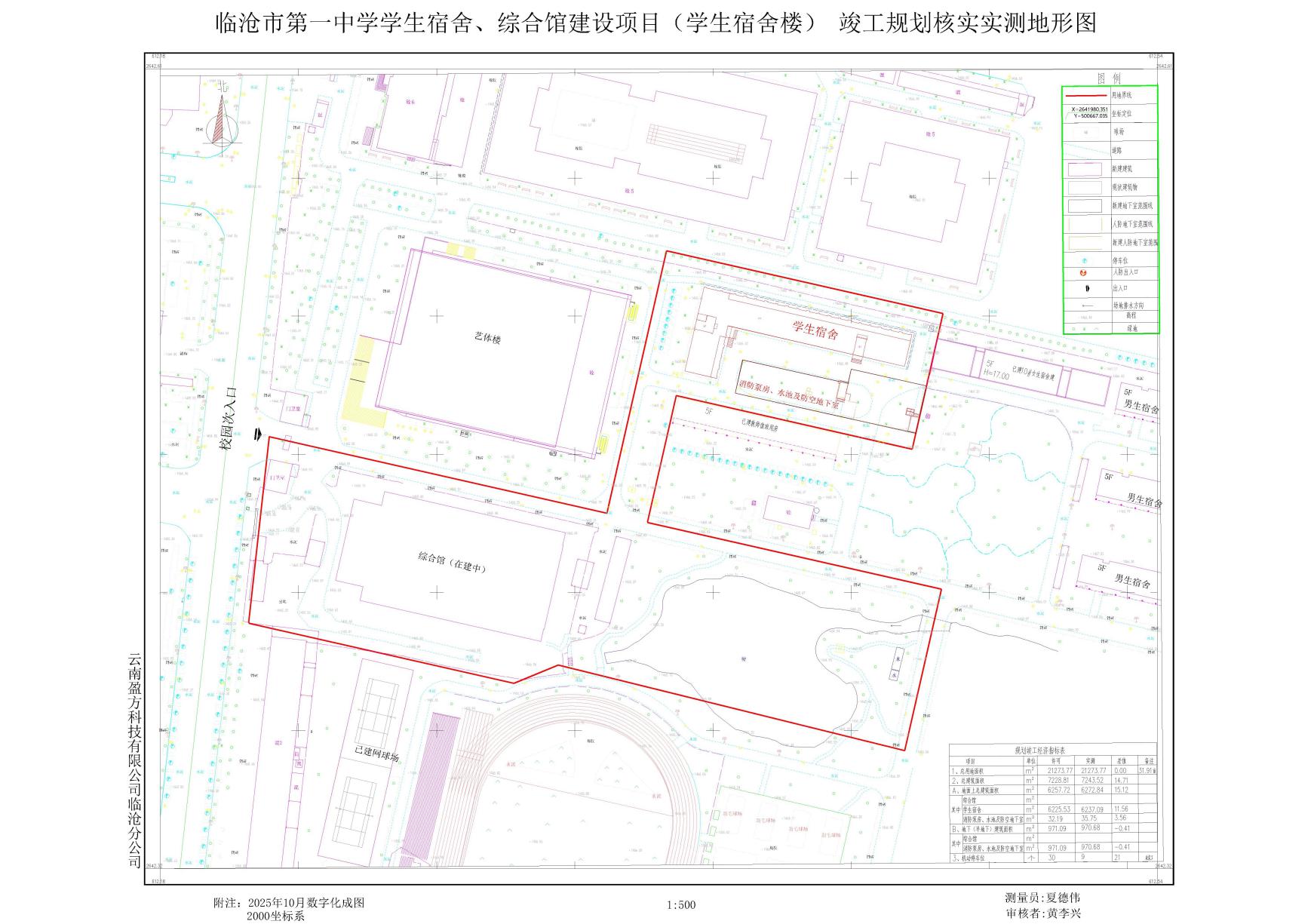临沧市第一中学学生宿舍、综合馆建设项目(学生宿舍楼)竣工规划核实实测地形图