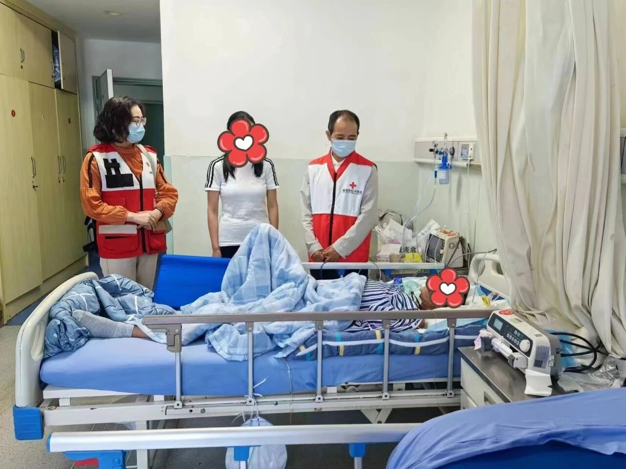 近日,临沧市红十字会在收到临翔区博尚镇村民王**的困难救助申请后,立即进行情况核实,了解到王**于2024年5月13日,因突发急性脑梗死,入住市人民医院重症监护室,家庭经济困难,市红十字会第一时间到医院进行看望慰问,并给予了人道救助。